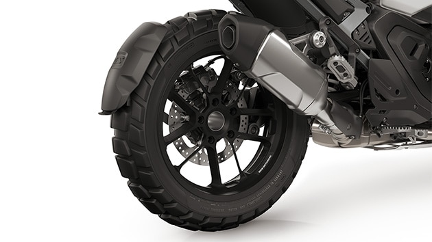 鍛造越野輪圈特別輕量,相比標準輪圈提供了更佳的越野性能。它們具有約1.8公斤的重量優勢和運動風格的外觀。高品質的陽極處理表面上裝飾有BMW Motorrad的品牌標誌